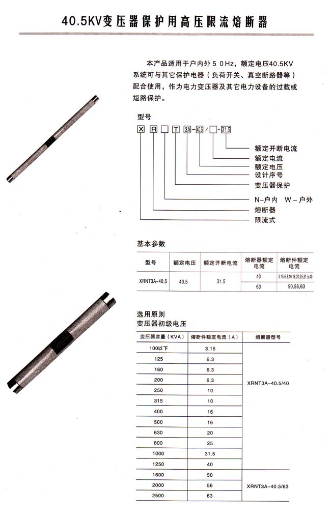 限流式熔管,可以安裝在任何型號的跌落上。現(xiàn)在為了將線路商議安裝的跌落熔斷器直接換成限流熔管,所以,首先生產(chǎn)的型號選擇了RM11型,但由于是限流熔管,所以叫做XRW11型。